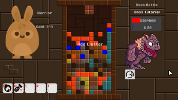 Early prototype of a game where you explore a dungeon and each encounter is a tetris-like battle with a twist. Choose between multiple characters and see how far you can get!